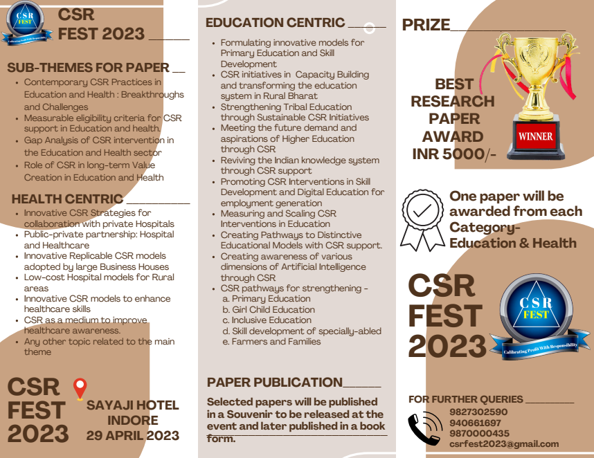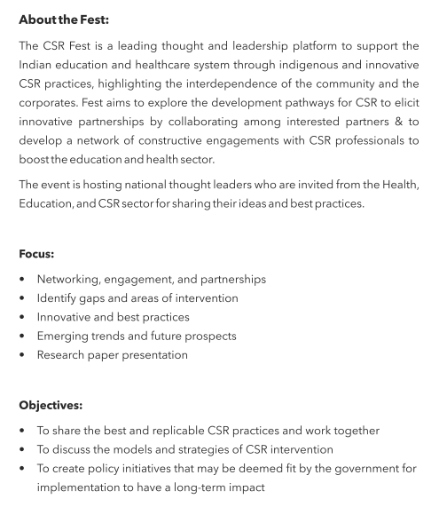 CSR Fest 2023 Leave a Comment / Events / By master Registration Link: https://docs.google.com/forms/d/e/1FAIpQLSf6_ccF9atVONkPqHoAezgLSAB9zG1P7173SZxVgeucTci44Q/viewform Make payment below: